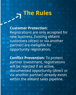 eMaint provides extensive resources, assets, training, and ongoing support to all partners. This includes a standardized onboarding process and assistance, technical documentation, go-to-market resources, and access to the Partner Portal for quick access to deal registrations, performance updates, access to marketing assets, and more. We hold twice-annual sales and technical enablement workshops as well as ad hoc trainings