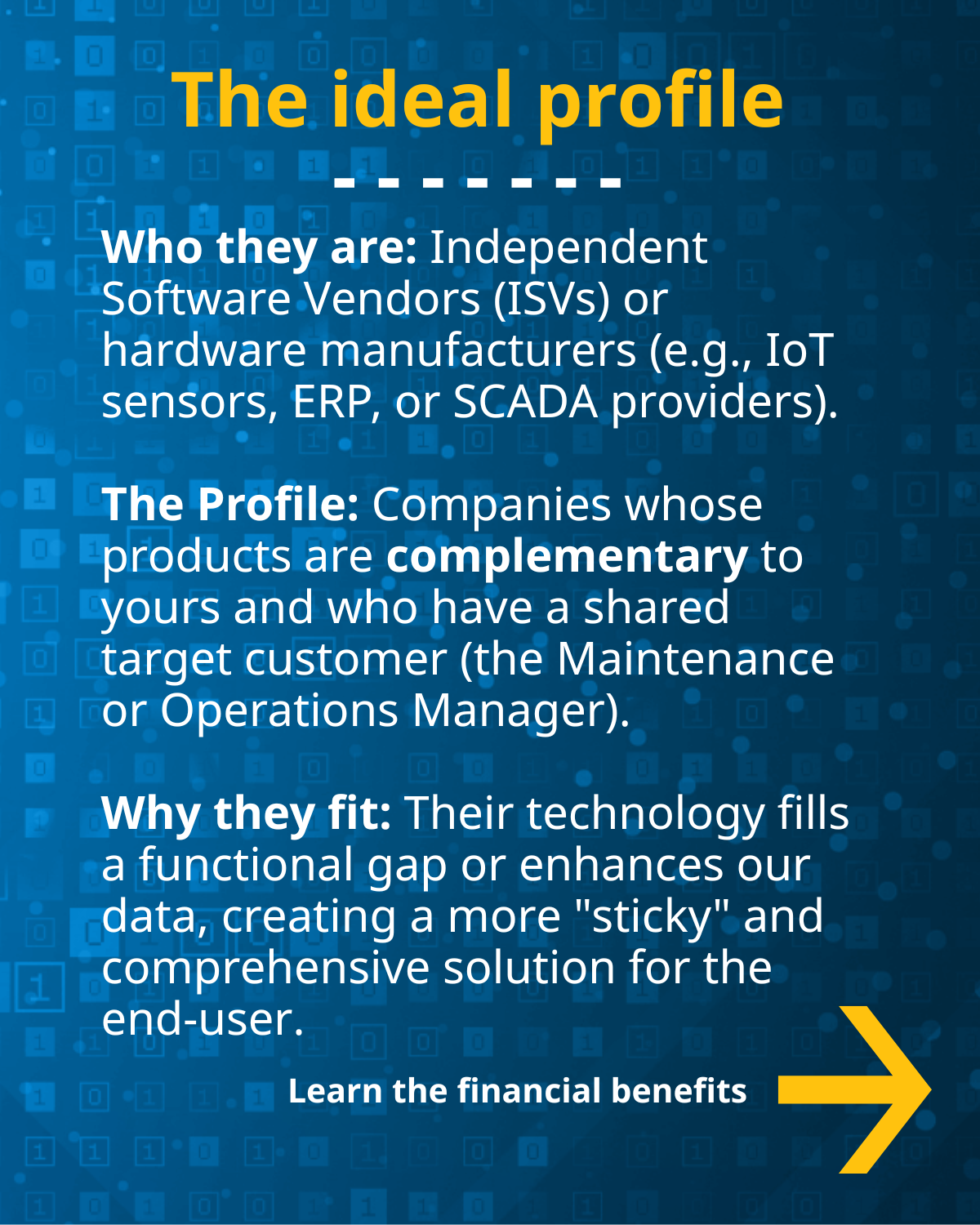 We are committed to building a high‑performing partner community focused on growing their business with eMaint, maintaining market‑relevant skills, and delivering continuous innovation and measurable value to our shared customers.